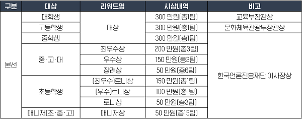 ※ 매니저상은 상을 받는 팀의 매니저(초·중·고)에게 지급하는 상으로, 온누리상품권으로 지급 예정